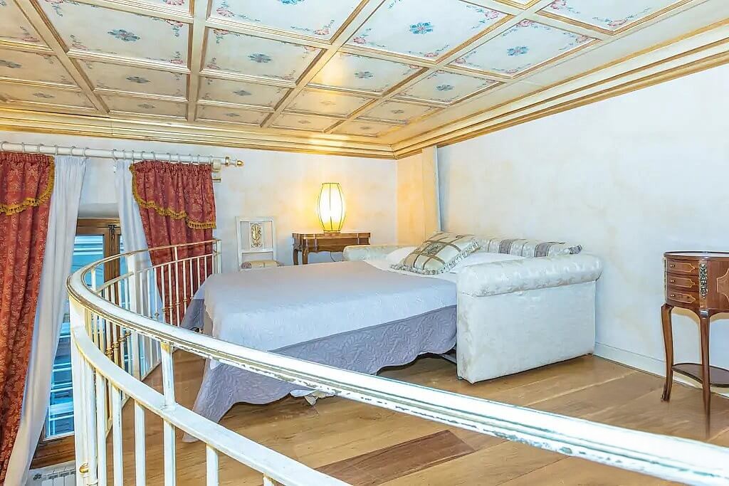 You will be able to enter the first bedroom from the living room through a corridor. The bedroom has a matrimonial bed (160 cm/62 inches, wider than a queen-size bed). The furnishings include a divan bed for one guest located on the mezzanine level. In this room you will find a satellite television (local channels). The room has a window. The bedroom is equipped with an air conditioning/heating unit.