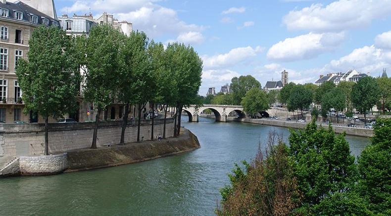 Located on Ile Saint-Louis, and a 17th Century edifice, is an exceptional apartment, which will exceed your expectations. It combines a perfect location in an historic neighbourhood, with all of the modern conveniences of home whilst still retaining its old world charm. Upon entering the building through an impressive wrought iron gate door (a unique feature on Isle Saint-Louis) you cross a paved courtyard before ascending a spiral stone stair case with decorative wrought iron railings (classified by National Patrimony) before reaching the apartment ‘Windows on the Seine’ located on the third floor. The apartment has almost 180 degree views of Paris and the Seine River below. The apartment itself offers the perfect combination of refined elegance and contemporary flair. High ceilings, and four high French windows reveal breath taking views of the Right Bank, adjacent quays, and the Seine River which flows just metres away from the building.  At night, the poplar trees which line the quay will reveal the twinkling lights of the Bateaux-Mouches below providing an incredible vista from your front row seats. A more romantic spot would be hard to find as you sip champagne and live the dream of being in Paris! With a surface area of approximately 30 square metres (about 330 square feet) this exceptional apartment has recently undergone a total renovation by its owner for you to enjoy. Historical features include the exposed beams, and the apartment has been renovated using only the highest quality materials and contemporary finishes to ensure your maximum comfort. This apartment’s tranquil ambience is further enhanced by the soft hues of light beige with blue tones, and a stone feature wall dating back to the 17th Century. Renovated mouldings, and the floor returned to its 18th Century chevron parquetry (but with total soundproofing) completes the picture. Luxurious beige drapes frame the views you will enjoy of the Seine River below. The double paned glass windows ensures the utmost calm and serenity during your stay.