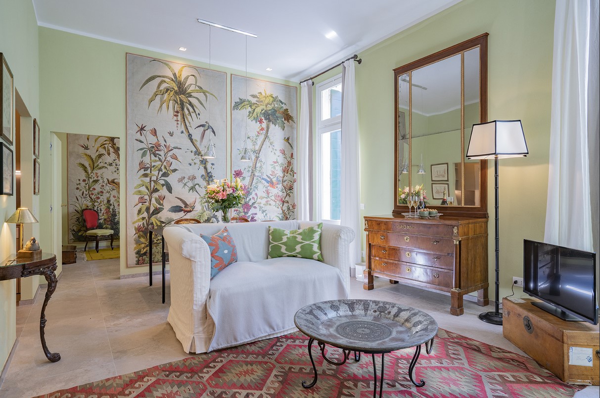 A pied-à-terre with a divine courtyard garden in the chic district of San Vio on the Dorsoduro ‘Museum Mile’. Beautifully dressed in a serene pistachio green and sublime botanical murals serving to ‘bring the outside in’, Ca’ Giovanni sleeps 2 guests in understated elegance between the Peggy Guggenheim Collection and the Accademia Galleries and Bridge.