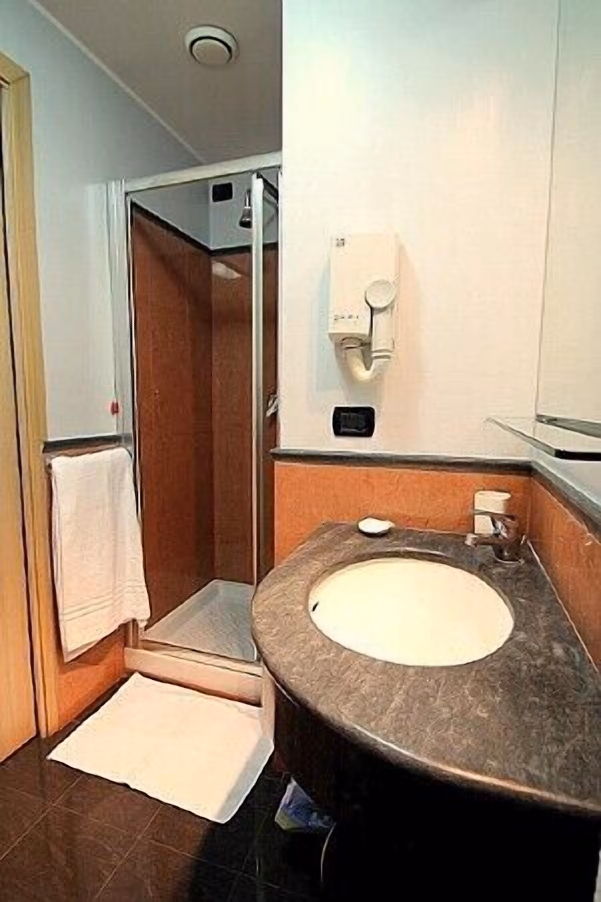The bathroom is equipped with a washbasin, a toilet, a fully enclosed shower and a hairdryer. You will be able to enter the bathroom from the living room.