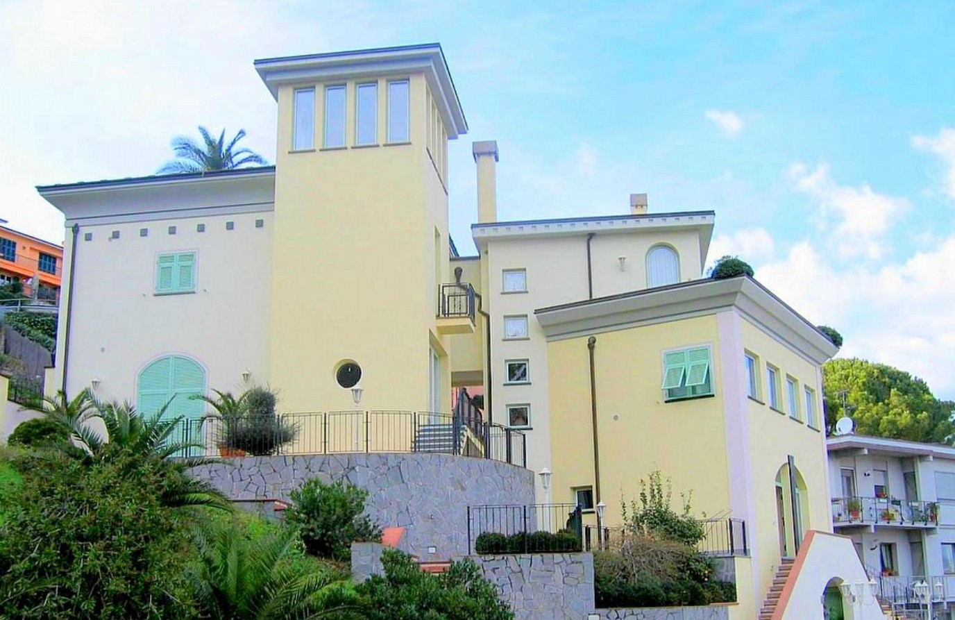 The garden is 100 square meters large. It is partly shaded by characteristic trees and by an awning. It is equipped with tables, chairs, sun umbrellas and deck chairs. From the garden you will enjoy a broad view of the Mediterranean sea and of La Spezia. You will share the garden with the other guests staying at the complex.