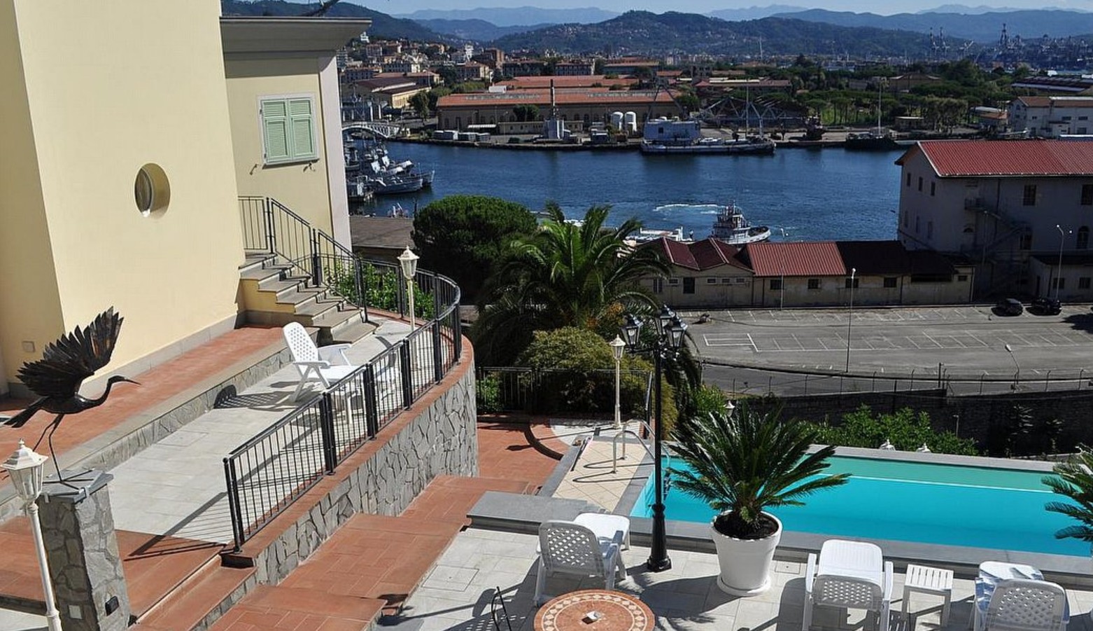 The swimming pool is 5 meters large by 11 meters long, 1.45 meters deep. The area is equipped with tables, chairs, sun umbrellas and sun loungers. From the swimming pool you will enjoy a fascinating view of the sea and of La Spezia. You will share the pool with the other guests staying at the complex and guests staying at the nearby hotel. The swimming pool is open from the beginning of April until the end of October.
