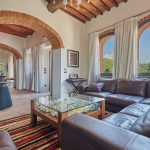 Sofa, armchair, coffee table, sink, coffee machine, table and chairs, side table, stairs to the ground floor bedroom 3, and separate staircase to the entrance, air conditioning.