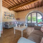 A charming stone-built country house in the heart of Chianti Classico, surrounded by olive groves, vineyards, and the rolling hills of Tuscany. Located on the renowned Tregole winery, it’s ideal for families or groups seeking peace, privacy, and an authentic Tuscan experience. The villa’s central location makes it a perfect base for exploring the region’s wineries, castles, and hilltop villages. The osteria of the nearby Castello di Fonterutoli is just minutes away by car or a scenic walk. Castellina in Chianti, with shops, cafés, and the excellent Gelateria di Castellina, is a short drive. Siena, San Gimignano, Florence, and Arezzo are also within easy reach.
