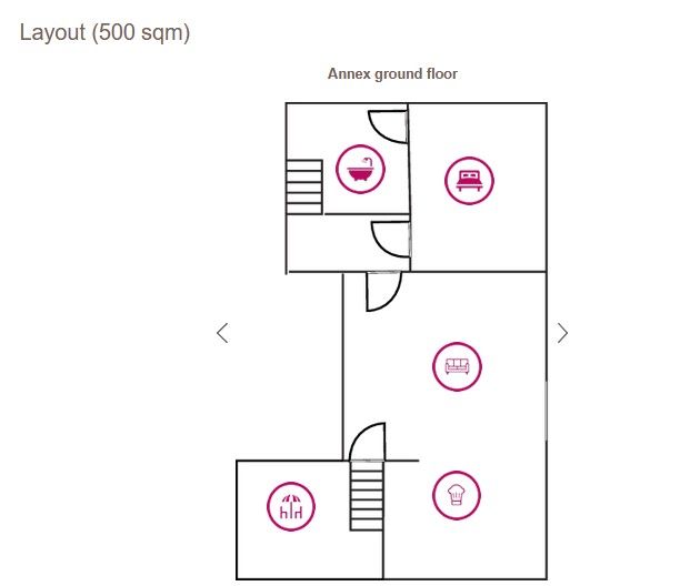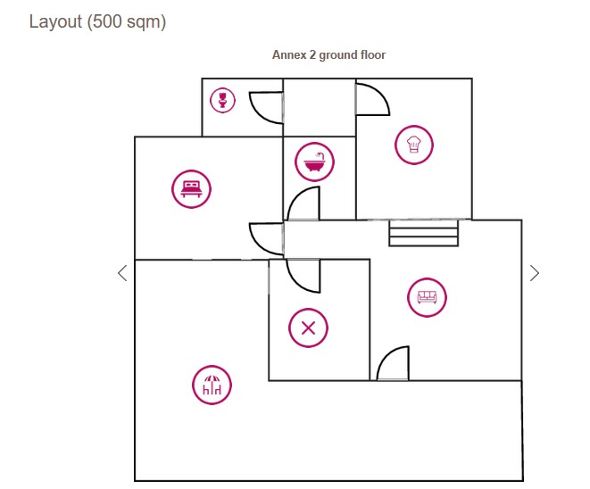 Set in a quiet rural area, the villa is surrounded by well-kept gardens with mature trees. Multiple terraces and outdoor seating areas offer both sun and shade, and the large pool is perfect for relaxing.