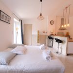 A beautiful 12 m2 entirely equipped kitchen with fridge, stove, microwave, cooktop, filter coffee machine and Nespersso coffee machine, kettle, dishwasher, washer and dryer.