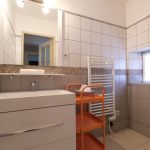 A bedroom (18m²) with double bed 180 with adjacent bathroom (2 sinks, bathtub, shower).
