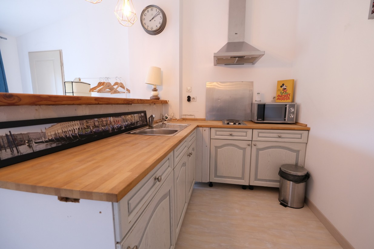 A beautiful 12 m2 entirely equipped kitchen with fridge, stove, microwave, cooktop, filter coffee machine and Nespersso coffee machine, kettle, dishwasher, washer and dryer.