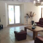 A living room (43m2) with TV, HIFI and DVD opening onto the terrace and the pool by a French door.