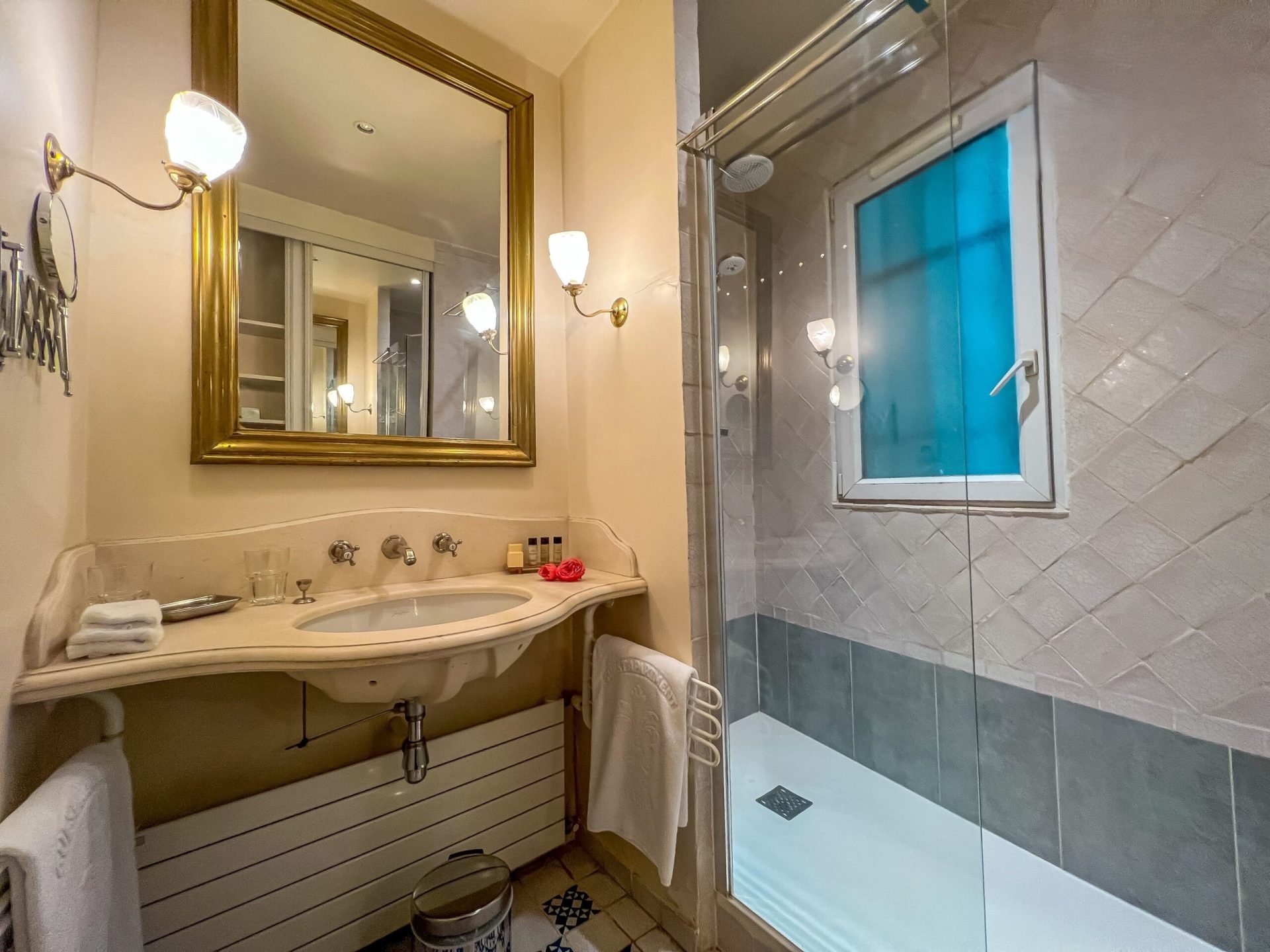 The kitchen is large enough to prepare gourmet French meals. The appliances are discreetly hidden behind cabinet doors: fridge, freezer, washer and dishwasher.