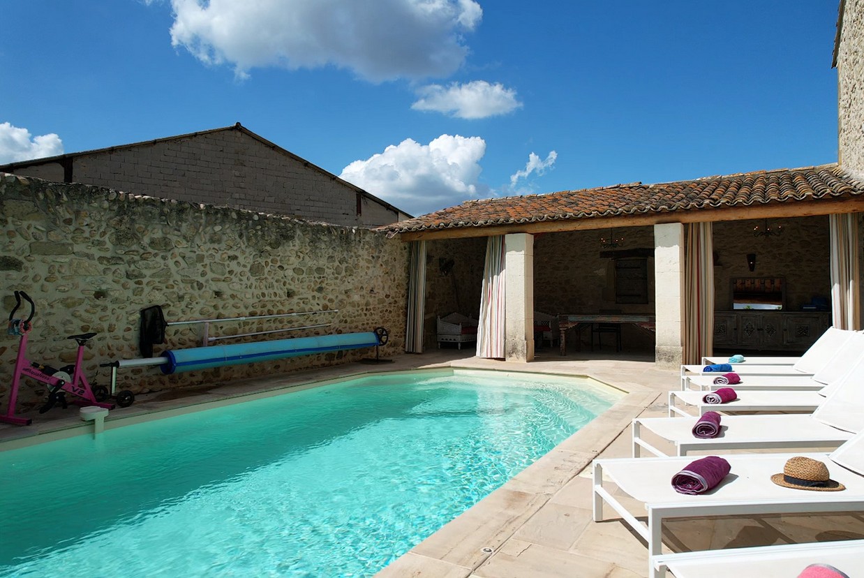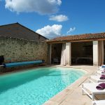 – A pleasant private heated swimming pool (9×4, depth 1.40 m) accessible by steps, with a security system of the Alarm type. Swimming pool in service from 1st June to 30th September. An aquagym bike is available.