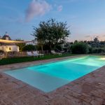 The pool is located approximately 20 m from the villa, surrounded by lawn and Mediterranean vegetation. Rectangular in shape; measures 14 x 4 m with a depth ranging from 1 to 2 m; lined with PVC; roman steps for access; saltwater purification; internal and external lighting. The 50 sqm sunbathing area is furnished with sunbeds and deckchairs. Open from the first Saturday in April to the last Saturday in October.