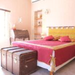 An air-conditioned bedroom (22m²) with double bed 160 with adjacent bathroom (bathtub and toilet).