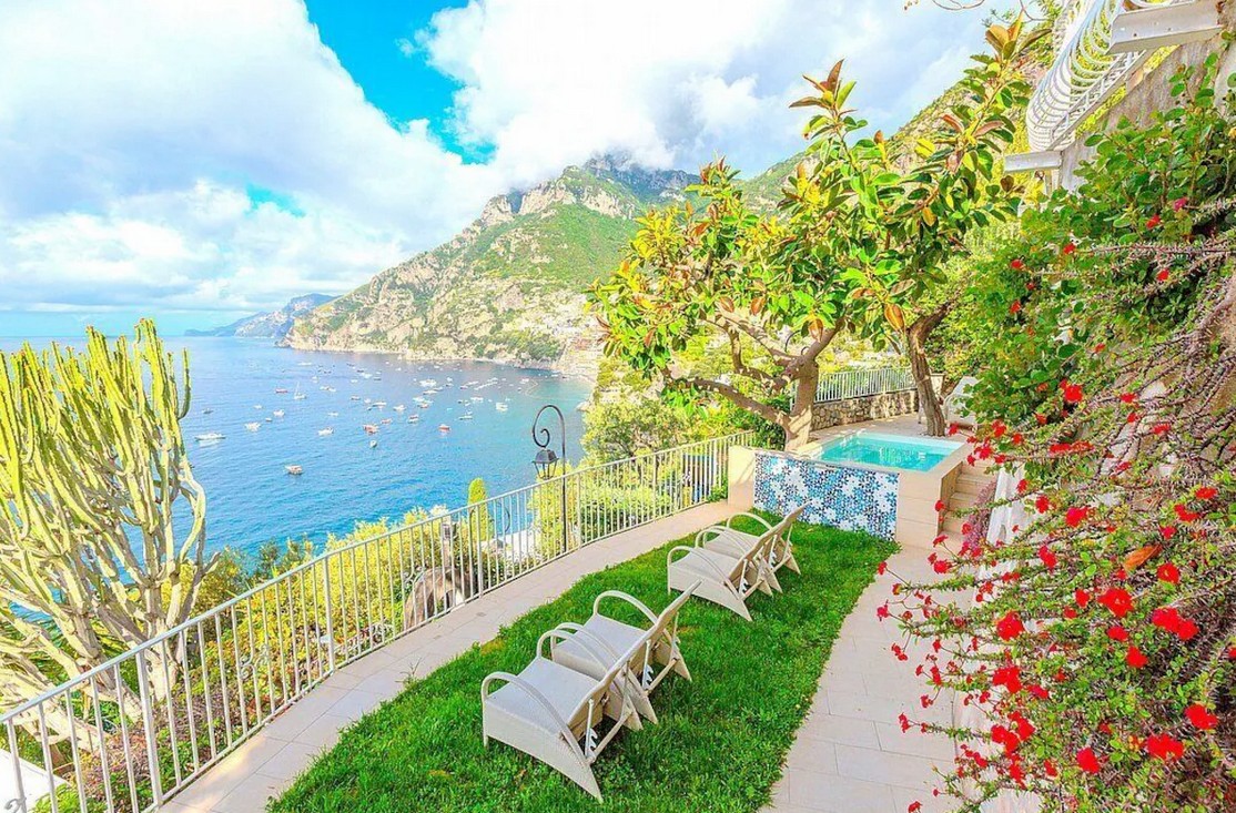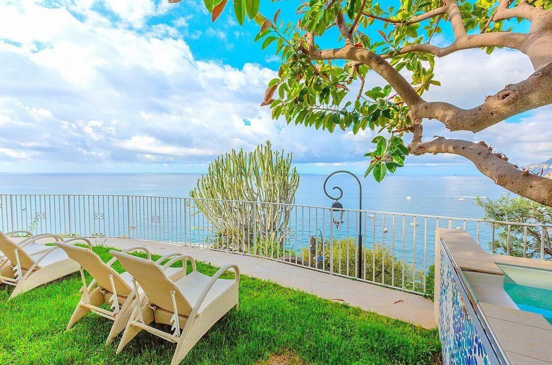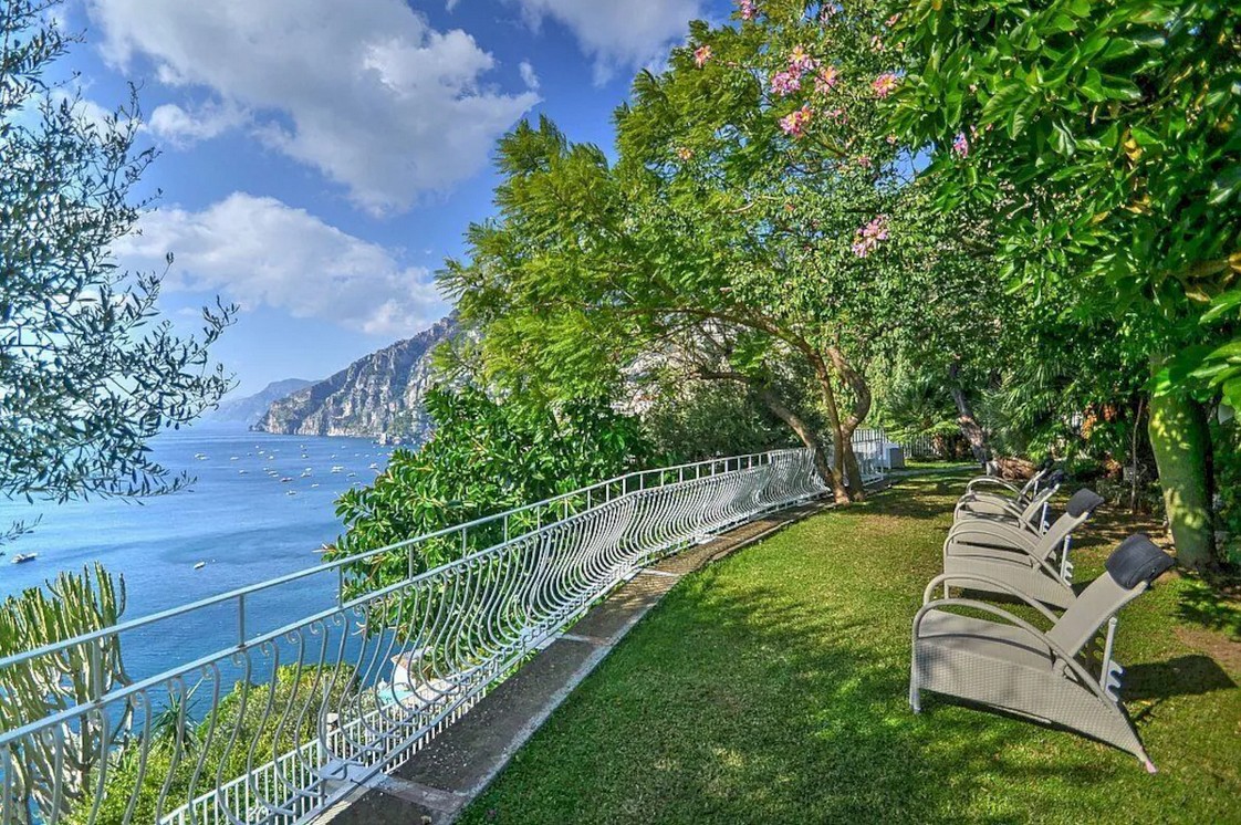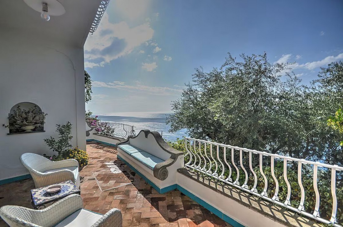 On the bottom level is the 3rd terrace is 25 square meters large. You will be able to enter it from the garden. It is partly shaded by a porch. It is equipped with tables, chairs and deck chairs. From the terrace you will enjoy a breathtaking view of the sea and of the small Li Galli islands.