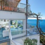 Bedroom/ensuite. You will be able to enter the third bedroom from the corridor. The furnishings are elegant and refined. The room has a matrimonial bed (160 cm/63 inches, wider than a queen-size bed), that can be split into twins if requested (please contact our staff in advance to make arrangements). From the bedroom you will be able to enter the terrace with a view of the sea and of the coastline through a French door. The room has a window with a view of the sea, and it’s equipped with an air conditioning/heating unit, and you will also find a safe. This bedroom has an en-suite bathroom, tiled with lucid handmade majolica tiles and equipped with a washbasin, a toilet, a large fully-enclosed shower and a hairdryer.