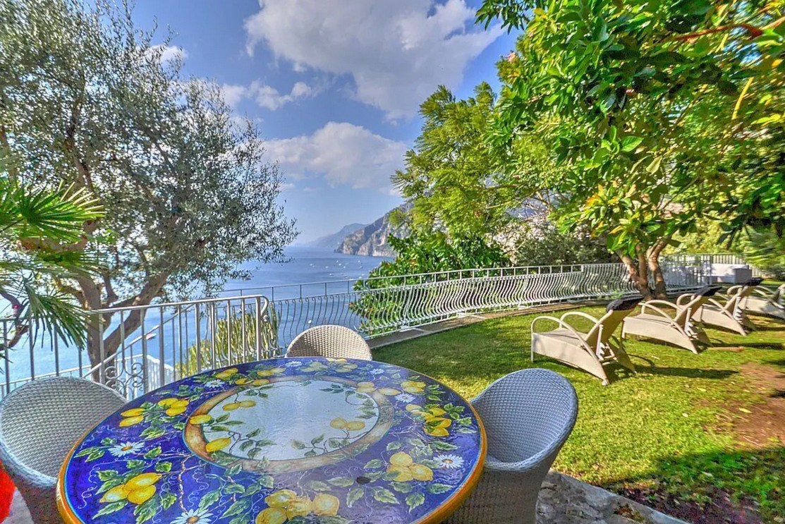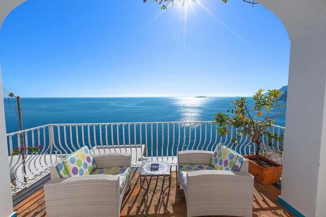 On the Top level is the second terrace and garden. This terrace is 25 square meters large. It is partly shaded by a roof. It is equipped with a table and chairs. From the terrace you will enjoy a charming view of the sea and of the coast from Positano to Punta Campanella, the western tip of the Sorrentine peninsula, and of the island of Capri on the horizon.