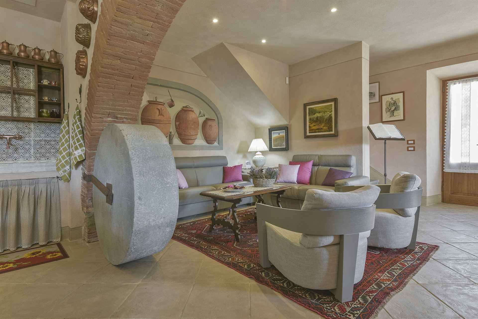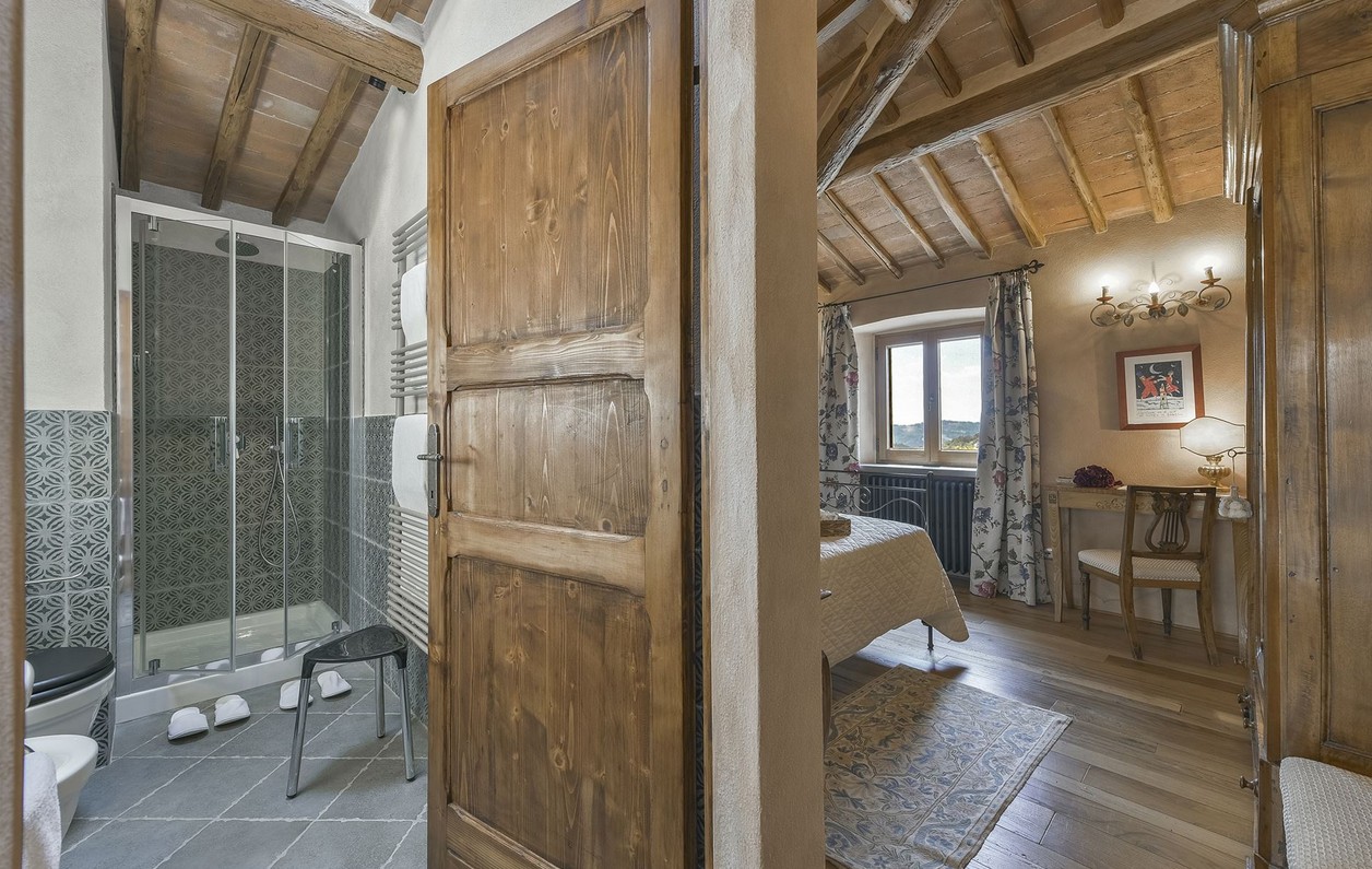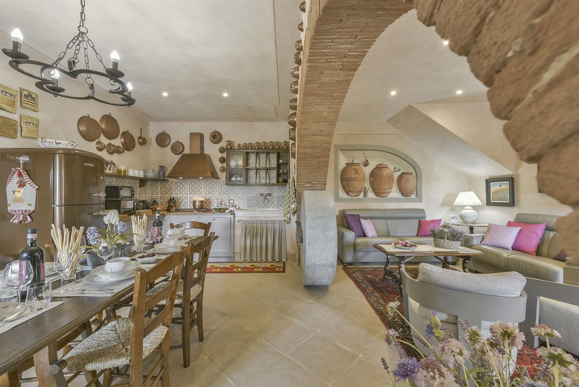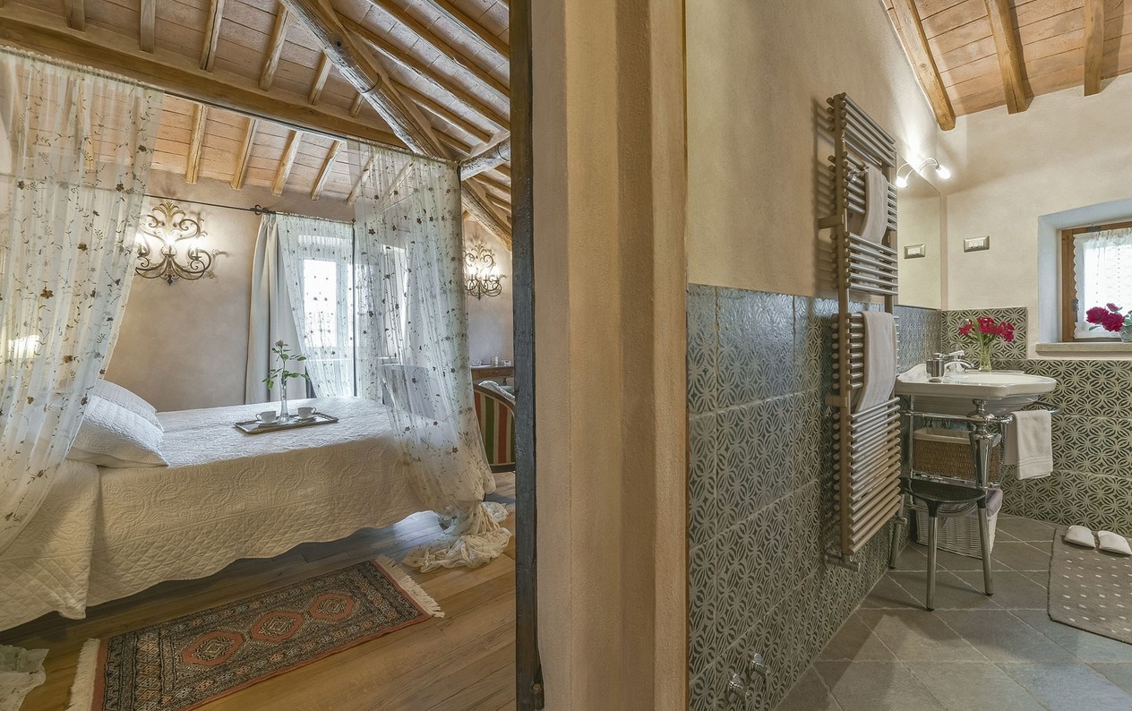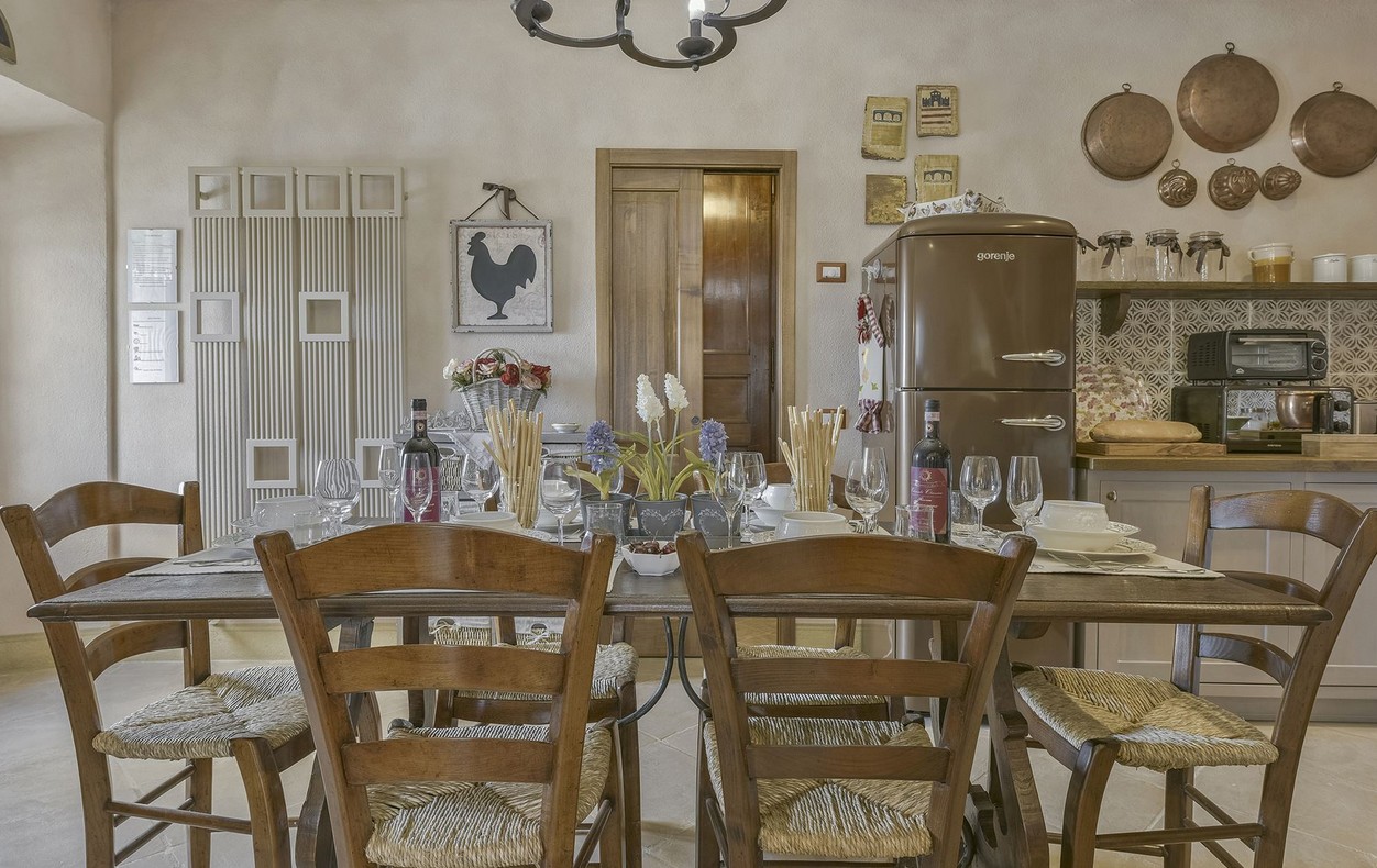 Inside, you’ll find a charming blend of traditional Tuscan style and very comfortable, lovingly chosen furnishings with many beautiful details.