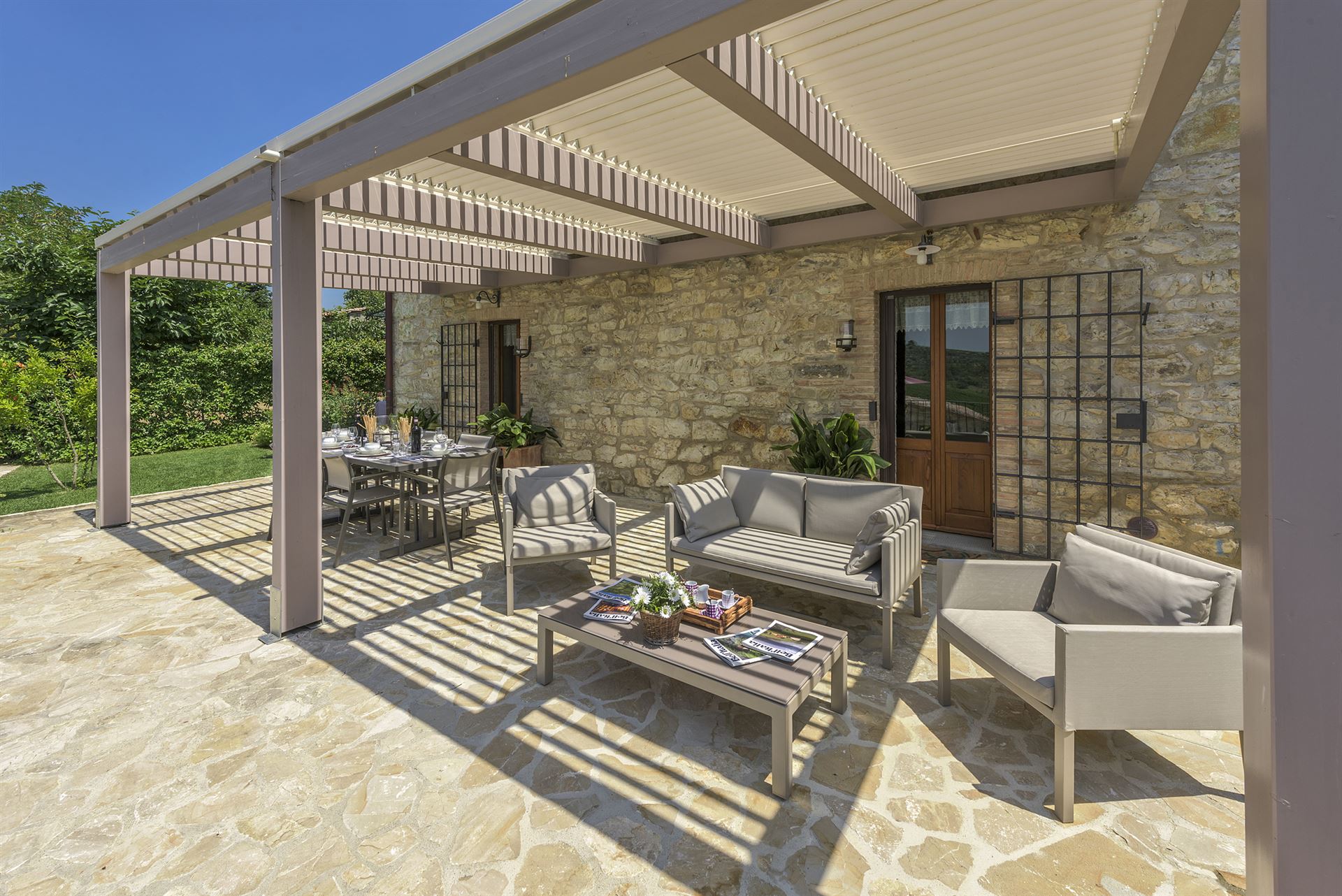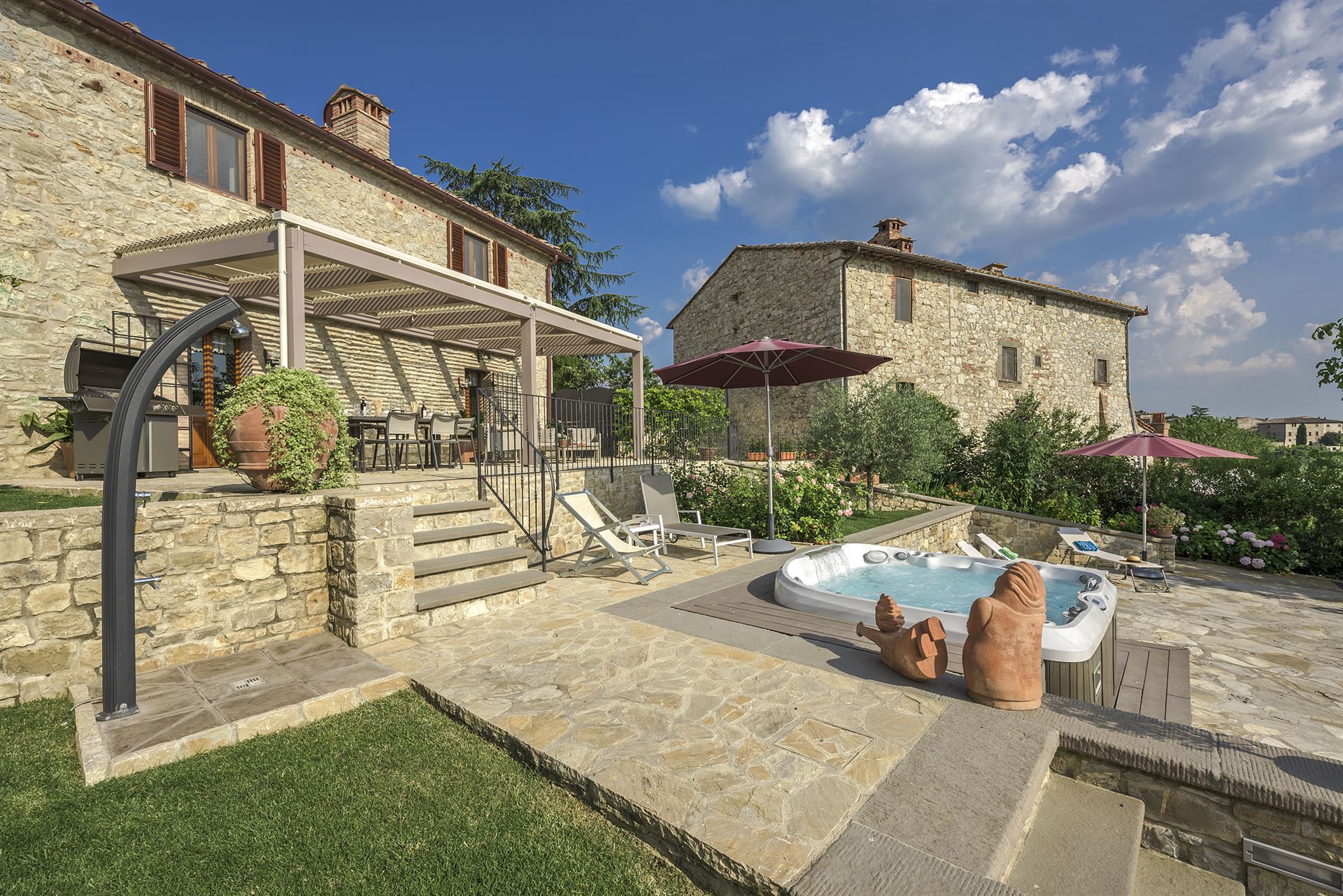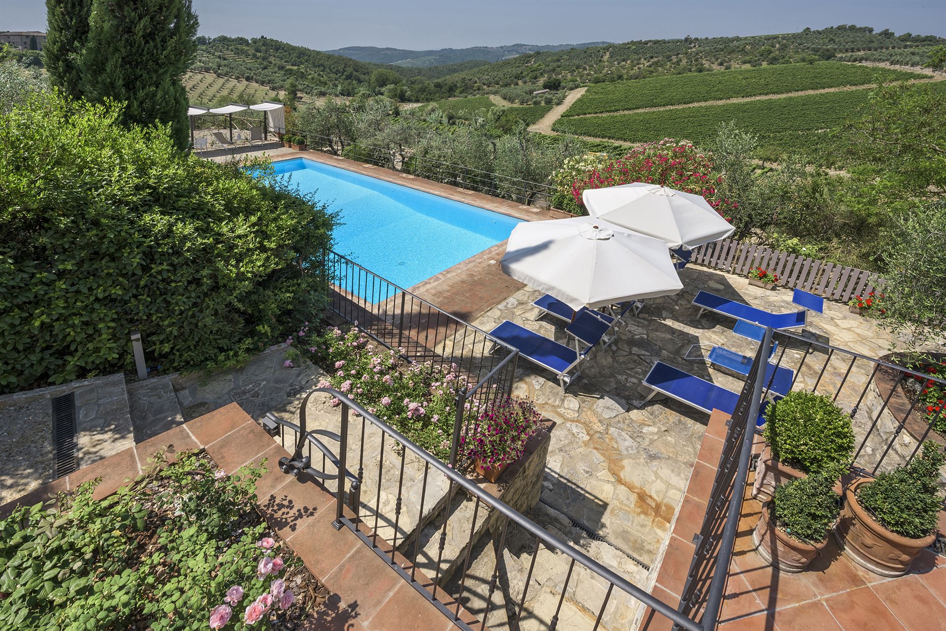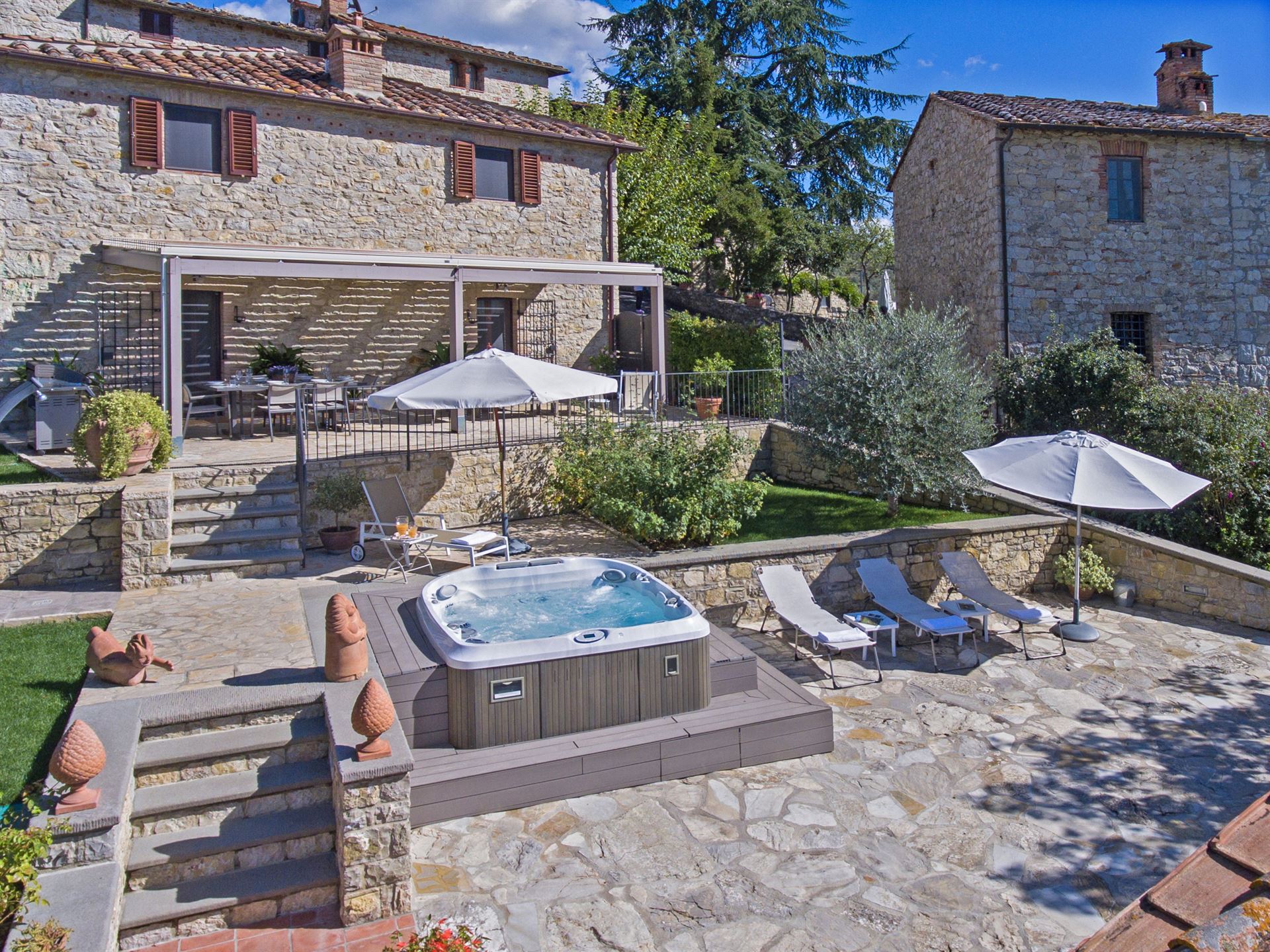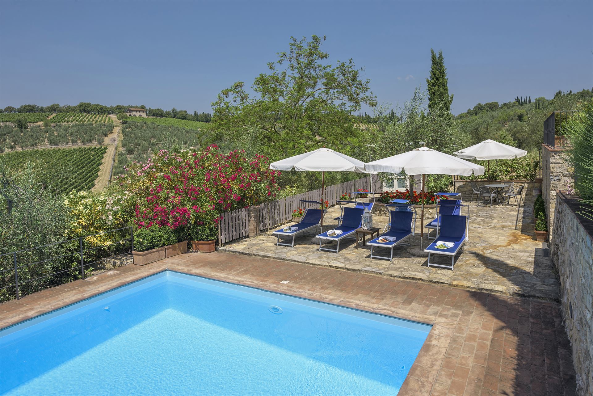 Inside, you’ll find a charming blend of traditional Tuscan style and very comfortable, lovingly chosen furnishings with many beautiful details.