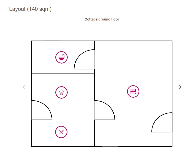A large covered terrace, perfect for outdoor meals, as well as a separate cottage with a bedroom, dining area with kitchenette and bathroom – ideal for guests who appreciate extra privacy. The spacious garden offers many cosy seating areas and spots to relax.