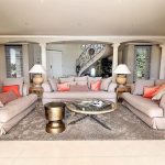 Five bedrooms are distributed between the ground and first floor. Three air-conditioned bedrooms and two bathrooms (one private and one shared) are located on the left side of the ground floor. The first floor consists of two main air-conditioned bedrooms, each with their own private bathrooms as well as a sunny terrace with a panoramic view of the sea and the golf courses. There is also an extra bedroom in the basement with its own bathroom (shower, sink and toilet. ).