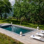 The swimming pool is located behind the property, on a lower terrace adjacent to the villa and can be reached in just a few steps along a downhill path. Rectangular and measuring 4 x 8 m with a constant depth of 1.50 m, the pool is lined in grey granito and bordered by teak wood flooring. It has chlorine purification, 3 internal spotlights and submerged steps for access to the water. The surrounding sunbathing area is equipped with sunbeds, a cold-water shower and an area with sofas and awning. The swimming pool is open from the last Saturday in April until the first Saturday in October.
