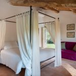 The huge park surrounding the villa extends over 2,8 hectares of terrain, completely fenced and accessible. As soon as you are past the first gate leading to the property, you are immediately immersed in a vast wooded area, which accompanies you along the entire driveway to the villa. The woods are full of oaks, junipers, ferns and cyclamen which can also be seen while walking around the villa. Once you get to the second access gate, you find yourself in the peaceful garden around the villa, with varied vegetation and flowering plants, such as roses and gardenias, which lend a beautiful touch of colour to the surrounding greenery. Welcoming you to the villa is a beautiful wisteria-covered pergola located just above the main entrance. In the park are many little corners that can be used in different ways: a beautiful nymphaeum created in an antique tub that receives water from the adjacent spring and a gym/yoga area, next to the woods about 50 m from the house, or the lovely external lounge area under a veranda where you can chat or lose yourself in a book. You can also enjoy excellent outdoor meals in the cosy dining area at the living room exit where, in addition to the excellent food, you will also enjoy the coolness of summer evenings. The three bedrooms with direct access to the garden have at their disposal a relaxation area with umbrellas, tables and deck chairs, where you can enjoy the peace and quiet of the property. The park is completed by an orchard with assorted seasonal fruit, such as apples, cherries, apricots and plums, and an area with aromatic herbs available to guests. In the park is also a small annex with the laundry room which is reached up a few stone steps. The parking area is located on the left at the end of the driveway.