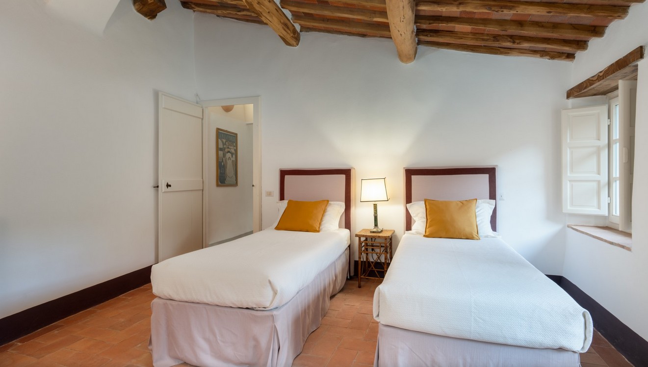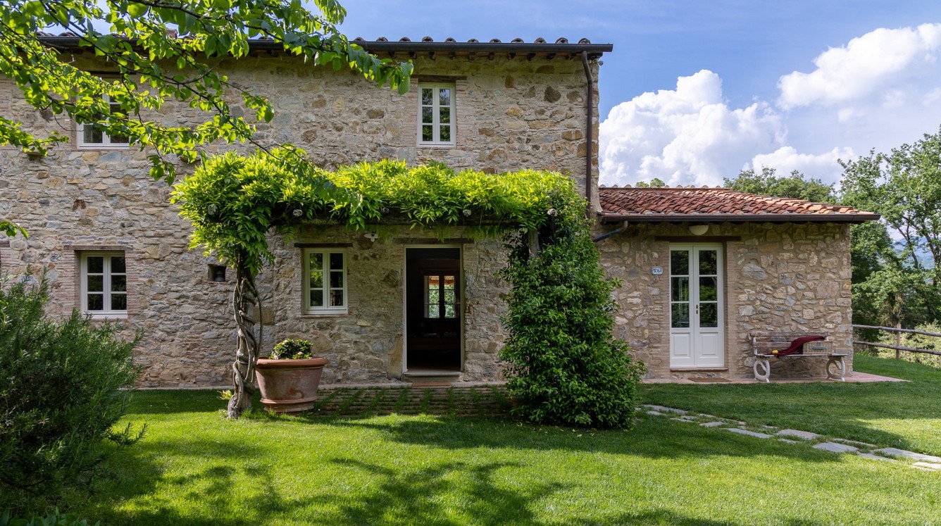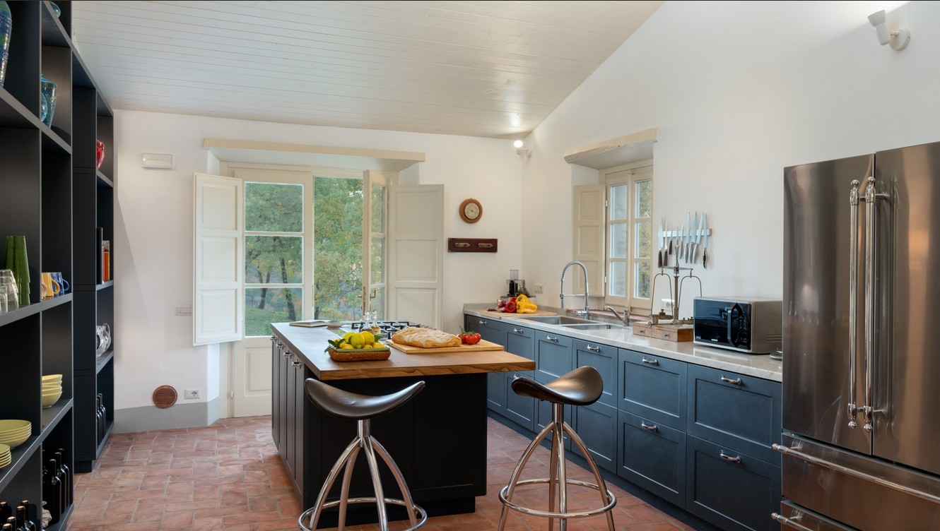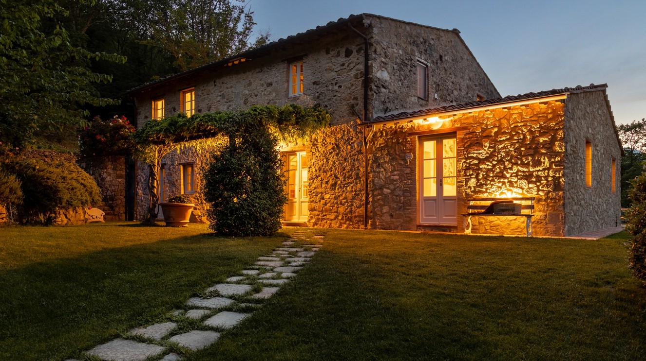 Just a short distance from the beautiful city of Lucca, is immersed in the green of a large wood that surrounds the entire property. The villa stands in the small borgo of Monsagrati, where you can admire the old Romanesque church of San Giovanni Battista, built in 1102. The villa has two floors and is an old 18th century country house recently restructured by the owners into a modern Tuscan rustic home, where the characteristic elements of this style are the terracotta floors and the ceiling with exposed wooden beams. The villa is composed of 4 bedrooms with private bathroom and air conditioning (one of the double bedrooms on the first floor also has a fan), a cosy dining room and a modern, well-equipped kitchen, both leading to the external living area, and a living room with TV and fireplace. In the garden is a living area with dining table and the swimming pool. Completing the property is a small annex with the laundry area. Then there is the large park where you can relax and enjoy the quiet of the place or play on the mini volleyball court at your disposal. Surrounding the property is a large wooded area with many paths for walking or hiking.