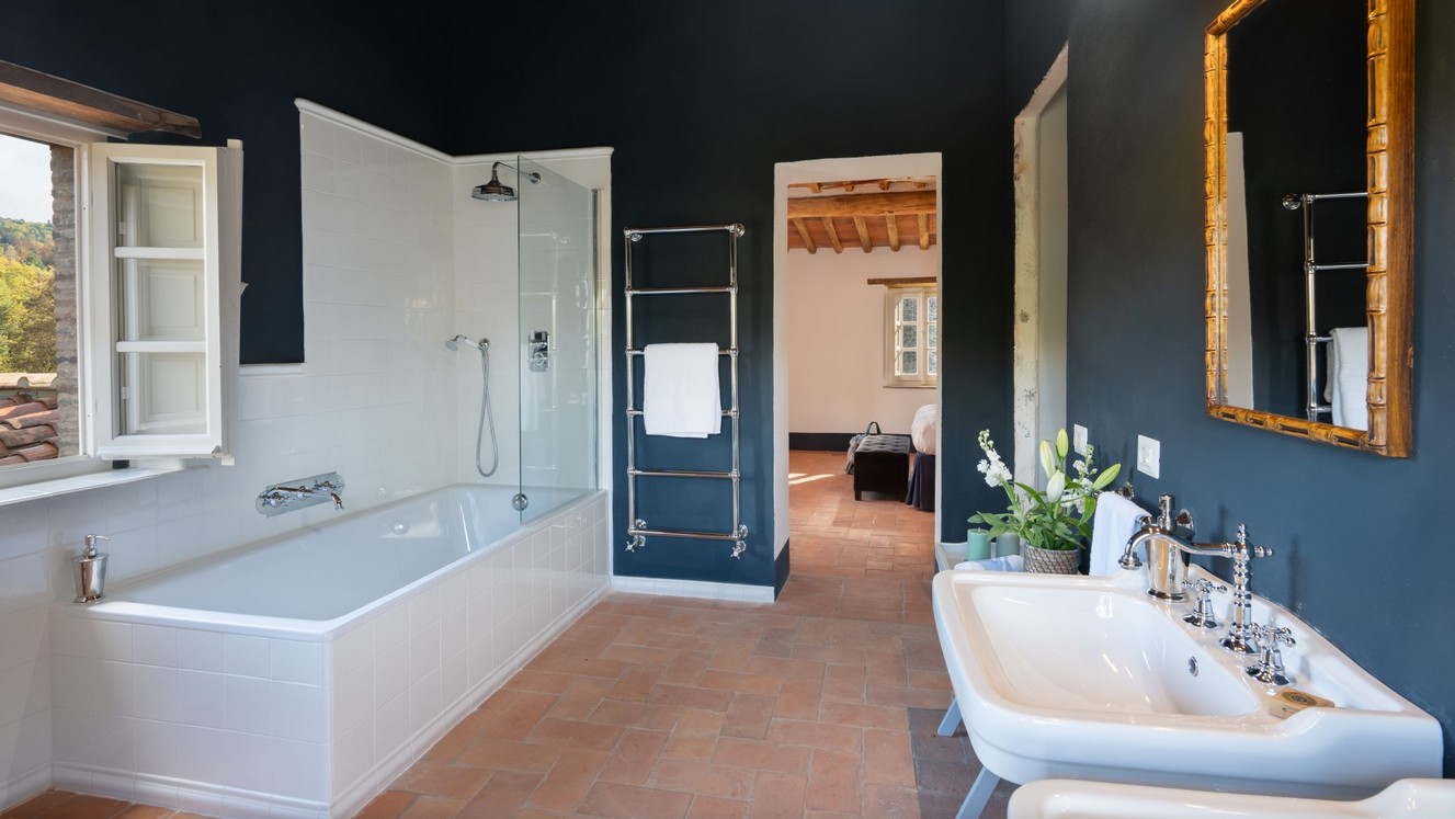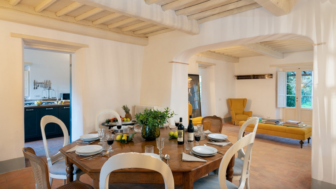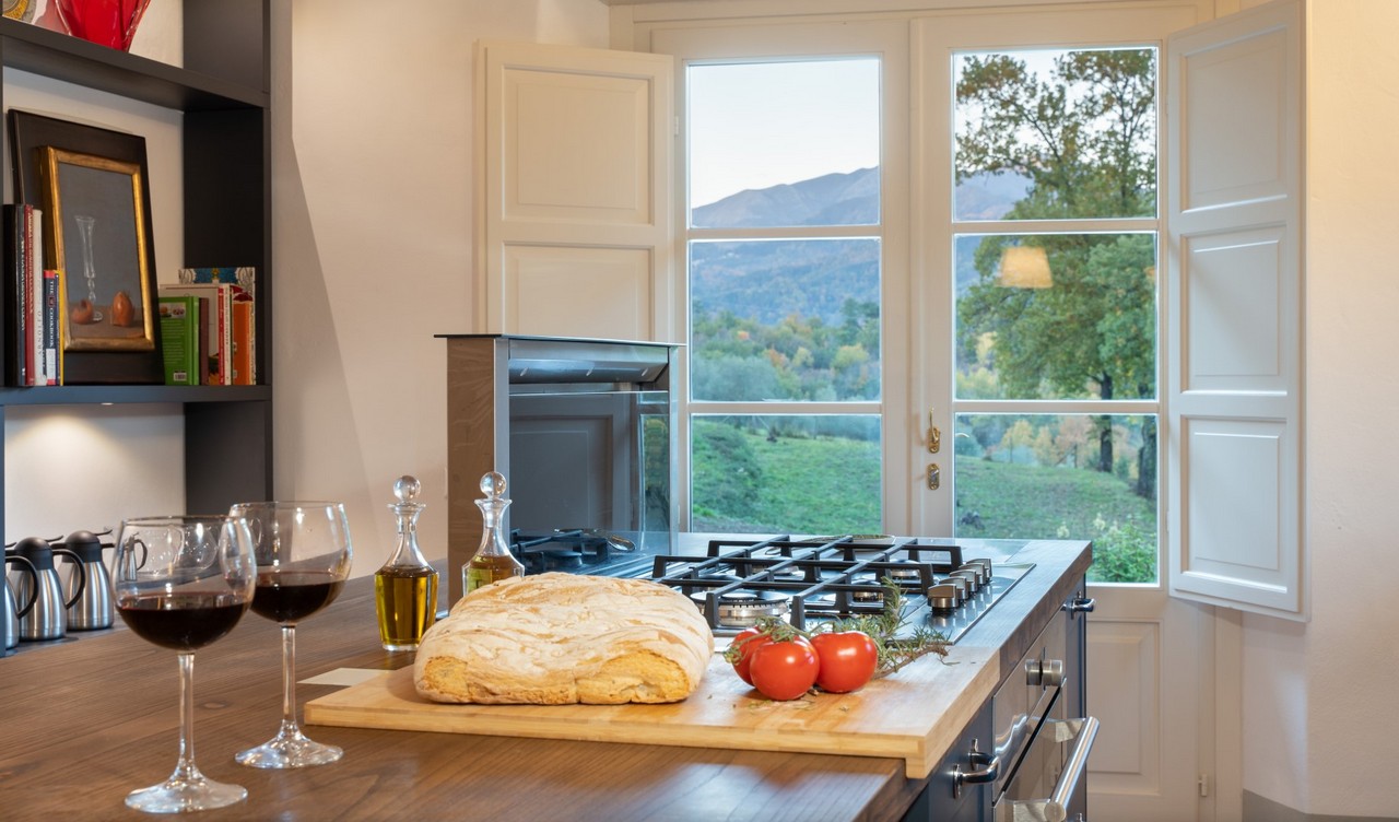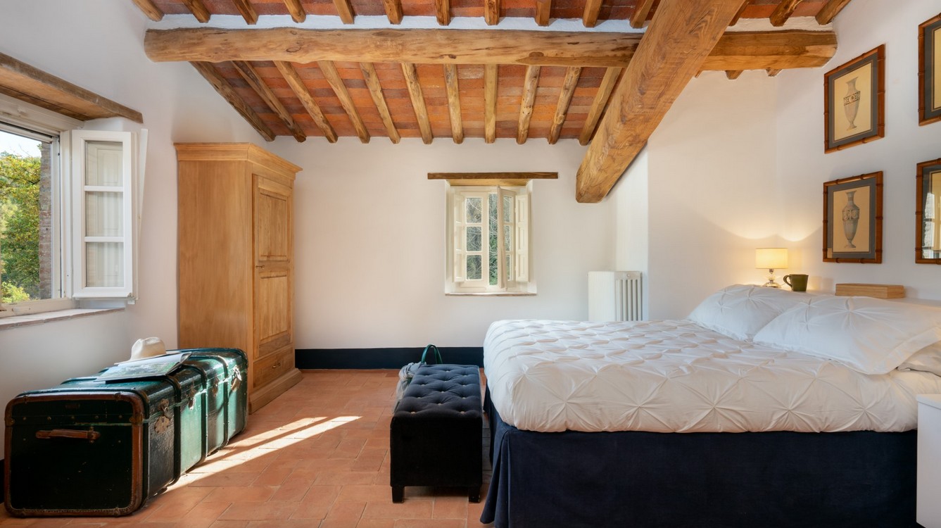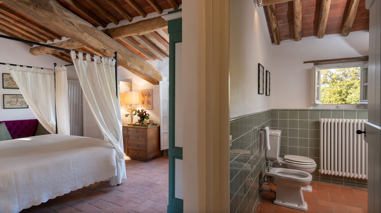 Just a short distance from the beautiful city of Lucca, is immersed in the green of a large wood that surrounds the entire property. The villa stands in the small borgo of Monsagrati, where you can admire the old Romanesque church of San Giovanni Battista, built in 1102. The villa has two floors and is an old 18th century country house recently restructured by the owners into a modern Tuscan rustic home, where the characteristic elements of this style are the terracotta floors and the ceiling with exposed wooden beams. The villa is composed of 4 bedrooms with private bathroom and air conditioning (one of the double bedrooms on the first floor also has a fan), a cosy dining room and a modern, well-equipped kitchen, both leading to the external living area, and a living room with TV and fireplace. In the garden is a living area with dining table and the swimming pool. Completing the property is a small annex with the laundry area. Then there is the large park where you can relax and enjoy the quiet of the place or play on the mini volleyball court at your disposal. Surrounding the property is a large wooded area with many paths for walking or hiking.