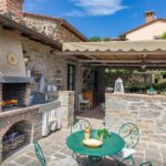 The property covers about 7500 square meters (part of what set up as orchard and vegetable garden at the back of the house). The park surrounding the house is completely fenced in for about 2500 square meters. Just past the entrance gate is a shady pine wood and in this area is present a wood playground for children with swings and a slide. Tall trees of the typical Tuscan vegetation such as cypress, mulberry and olive trees fill the garden which is embellished with a rich assortment of herbs and colourful, fragrant flowers. Outside the French window of the kitchen is a spacious veranda with seating and dining area and a brickwork barbecue where guests can enjoy alfresco meals whilst admiring the beautiful panorama.
