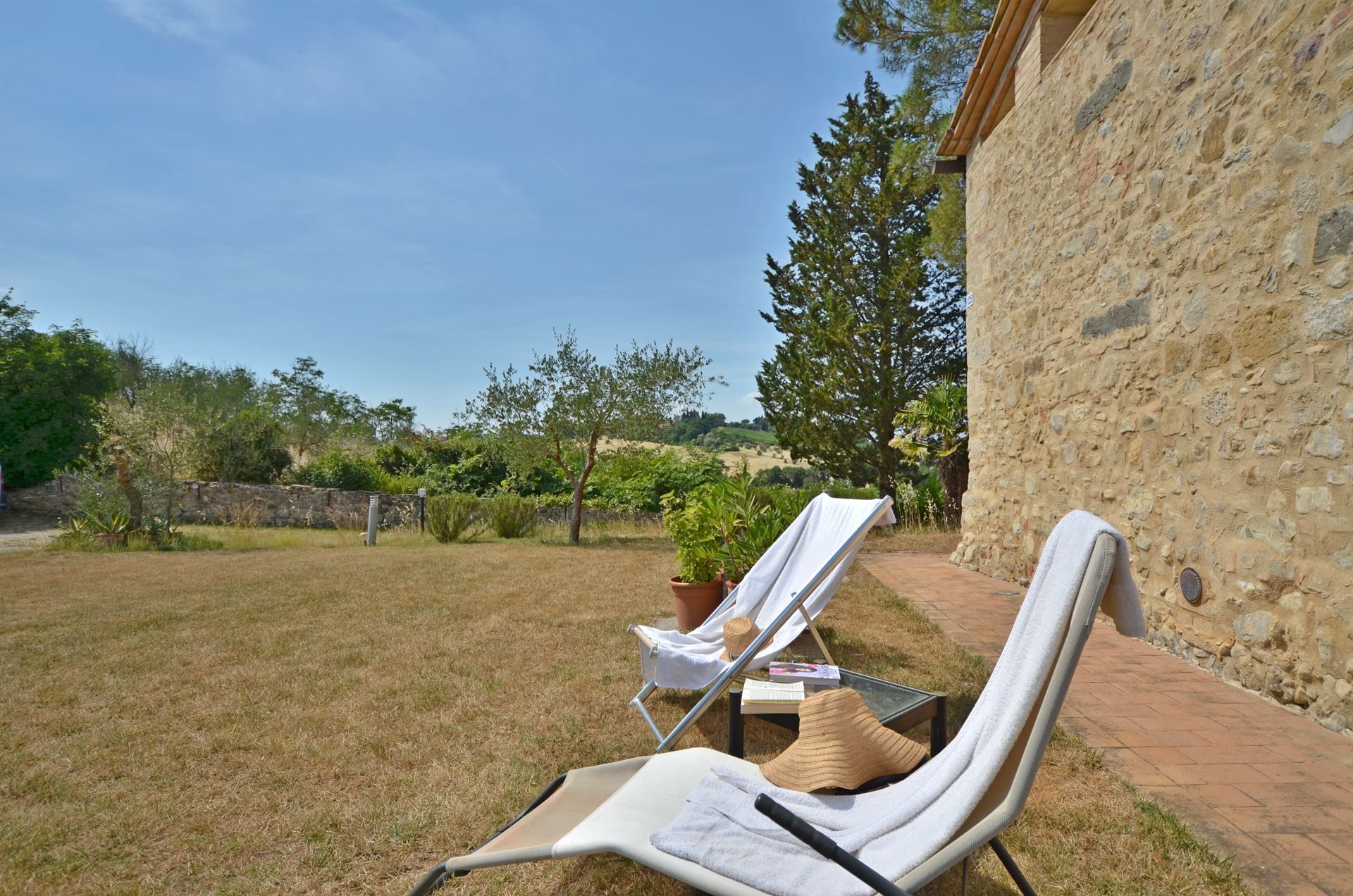 A charming holiday home, perfect for two guests, offering a peaceful retreat amidst the beauty of the Tuscan countryside just 6km from Siena. Set within a large garden full of fruit and olive trees, the villa provides a serene and private atmosphere. Located just 6 km from Siena, the Villa offers easy access to the city’s famous sights, as well as supermarkets and a wide variety of shops. Close to the villa, guests will find several nearby restaurants, including the Antica Trattoria Botteganova and a bakery just 1 km away. Wine lovers will appreciate the nearby San Giorgio a Lapi winery, which offers wine tastings